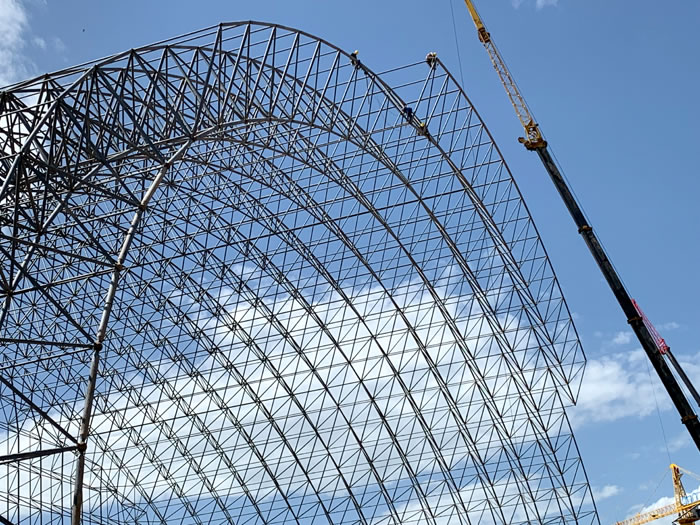 (2)网架加工前应对现场尺寸进行复测,确认无误后方可进行加工、安装;网架制作、运输、安装应遵守《空间网格结构技术规程》JGJ7-2010、《钢网架河北螺栓球节点》JG/T 10-2009、《钢网架河北螺栓球节点用高强度螺栓》 GB/T 16939-2016、《河北钢结构河北工程河北施工规范》 GB50755-2012、《河北钢结构河北工程河北施工质量验收标准》 GB50205-2020。